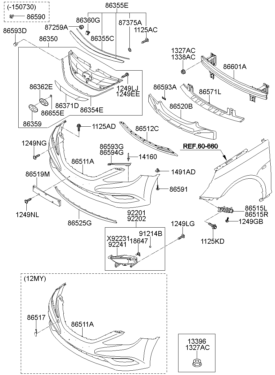 HYUNDAI 865613S700 Front Bumper Grille